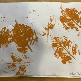 Nursery have been looking for signs of Autumn. They have noticed the different coloured leaves and used them for leaf printing.