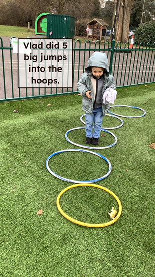 Nursery had lots of fun celebrating Number Day. We practiced our subitising and created number hats with our favourite number on them. We explored weight using the balance scales to weigh sand. Outside we had lots of fun counting our jumps, steps and hops.