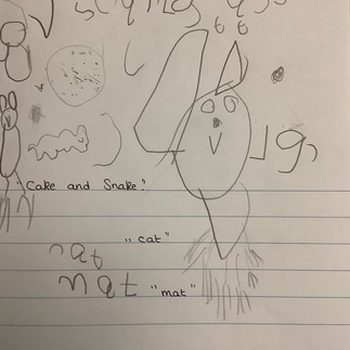 As part of Nursery Rhyme week Reception have been reading 'The Rhyming Rabbit' by Julia Donaldson. As part of our Drawing Club we have been drawing the Rhyming Rabbit. Along with our drawing of the rabbit we have been drawing things that rhyme. We have been using our phonics knowledge to write initial sounds and words.