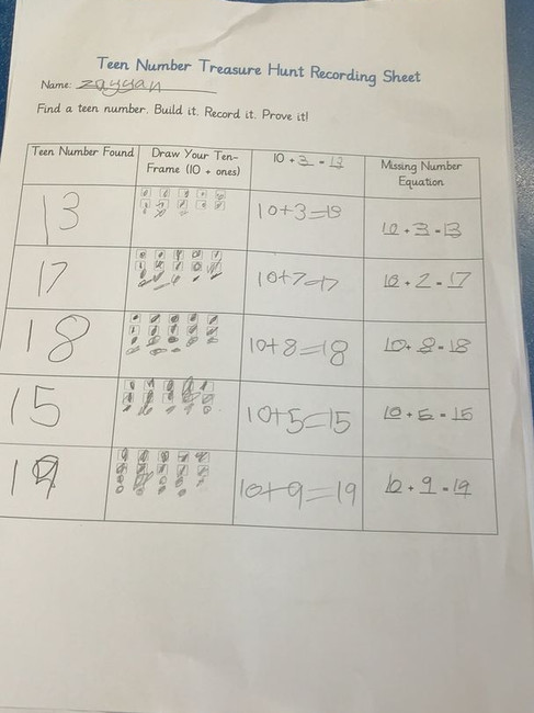 In maths this week, Year 1 have completed their thinking about teen numbers with a teen number hunt in the classroom and a game using dice. They worked hard to partition the numbers and show their understanding of how they are made.